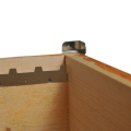 La configurazione consigliata prevede l’installazione di tre angolari per arnia: due nella parte anteriore e uno in quella posteriore. In questo modo è possibile mantenere un angolo libero per l’inserimento della leva staccafavo, agevolando il distacco del melario senza danneggiare il legno. Se necessario, si può applicare un angolare poggialeva nell’angolo restante per aumentare la protezione contro l’usura.