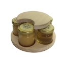 Espositore girevole in legno per 5 vasetti mignon di miele da 40/50 g