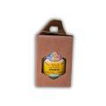 Questa scatoletta si distingue per la sua struttura compatta (dimensioni 70x70xh100 mm) e per il manico integrato che ne facilita il trasporto, rendendo semplice offrire miele e altre specialità alimentari come confetture, paté o creme vegetali, sia nell'esposizione in negozio che come confezione regalo. La finitura opaca e le onde verticali del cartoncino donano un aspetto naturale e coerente con l'immagine di prodotti artigianali o biologici.