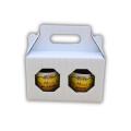 Questa scatola portavasetti in cartoncino bianco è studiata per ospitare due vasetti da 250 grammi di miele o prodotti simili. Ideale per produttori artigianali e negozi specializzati, assicura protezione e valorizzazione estetica grazie al design con finestre ottagonali e manico saldo.